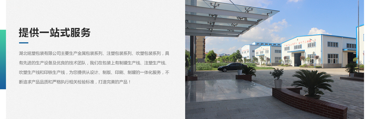 湖北銘塑包裝有限公司一家集研發(fā)、生產(chǎn)、銷售于一體的較優(yōu)秀民營(yíng)企業(yè),技術(shù)力量雄厚,產(chǎn)品質(zhì)量可靠。位于交通暢順,百業(yè)興旺、經(jīng)濟(jì)富裕、政策開(kāi)放的孝感開(kāi)發(fā)區(qū)域。我們企業(yè)的營(yíng)銷戰(zhàn)略是以建筑為土壤,以產(chǎn)品為種子,以質(zhì)量為肥料,讓綠色鋪滿全球。憑借多年來(lái)的行業(yè)經(jīng)驗(yàn),公司不斷進(jìn)行創(chuàng)新和研發(fā),為市場(chǎng)提供更廣泛的產(chǎn)品應(yīng)用領(lǐng)域和更好環(huán)保節(jié)能產(chǎn)品,為國(guó)家能源環(huán)保戰(zhàn)略和可持續(xù)發(fā)展戰(zhàn)略作出應(yīng)有的貢獻(xiàn)。 湖北銘塑包裝有限公司主要生產(chǎn)金屬包裝系列、注塑包裝系列、吹塑包裝系列,具有先進(jìn)的生產(chǎn)設(shè)備及優(yōu)良的技術(shù)團(tuán)隊(duì),我們?cè)诎b上有制罐生產(chǎn)線、注塑生產(chǎn)線、吹塑生產(chǎn)線和印鐵生產(chǎn)線,為您提供從設(shè)計(jì)、制版、印刷、制罐的一體化服務(wù),不斷追求產(chǎn)品品質(zhì)和嚴(yán)格執(zhí)行相關(guān)檢驗(yàn)標(biāo)準(zhǔn),打造更好的產(chǎn)品!